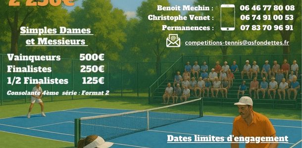 Comme chaque année, la section Tennis organise son tournoi estival Open et Jeunes du 20 Mai au 11 Juin 2023 ouvert à tous les licencié…