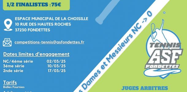 La section Tennis organise son tournoi estival Open du 29 Mai au 22 Juin 2025 ouvert à tous les licenciés sur le site de la Choisille…