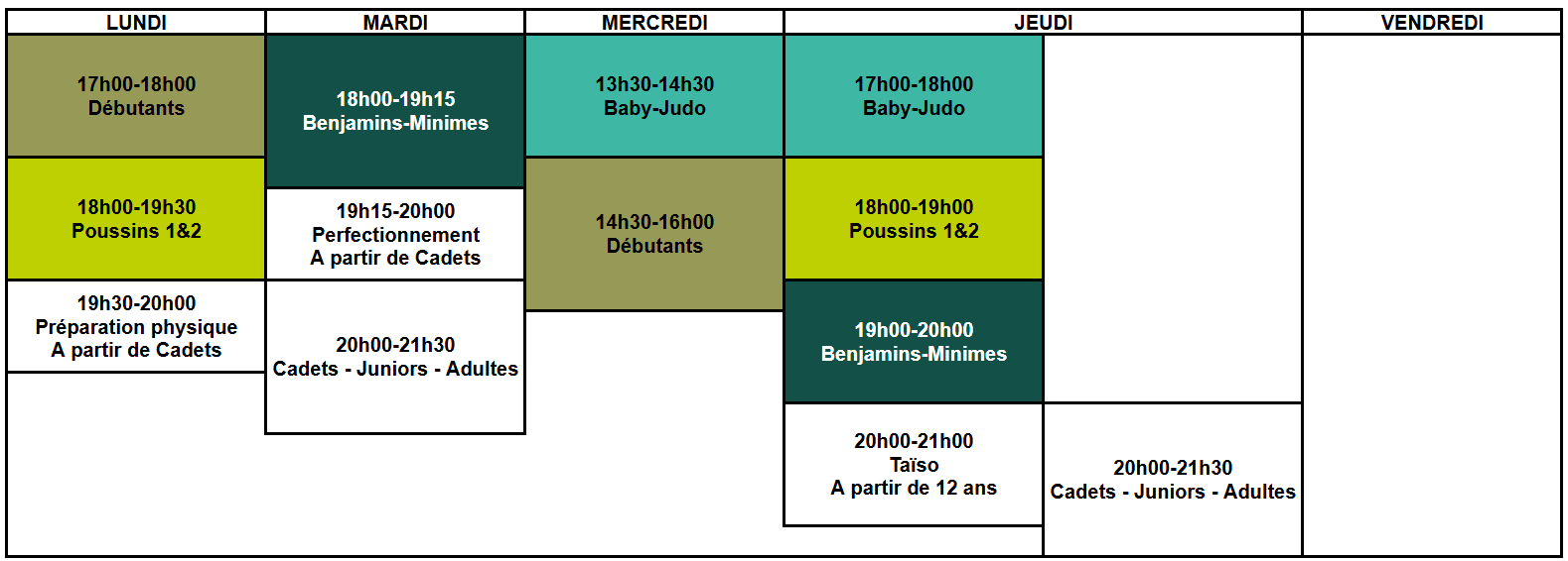 à partir de 4 ans jusqu’à …(pas de limite), filles et garçons de la ceinture blanche à la ceinture noire, se côtoient sur le tatami encadrés par des professeurs de hauts niveaux.