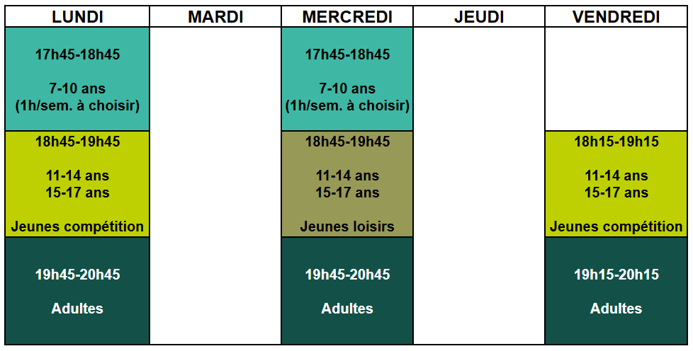 Selon le nombre d’inscrits, les créneaux pourraient évoluer en début de saison.